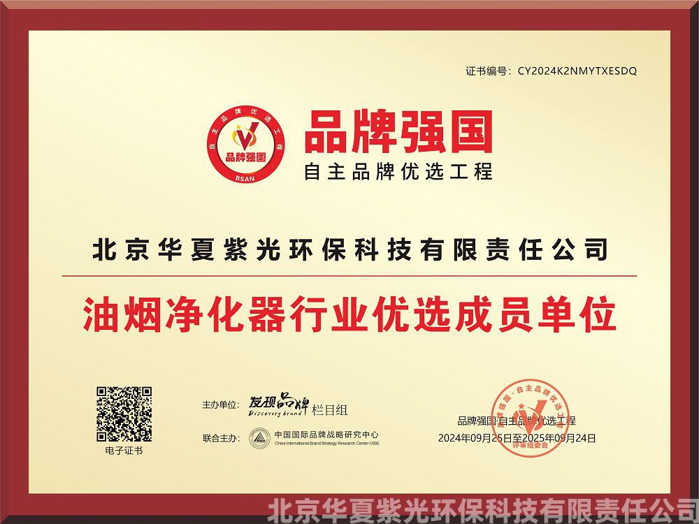 近期,經(jīng)過資質(zhì)審核、輿情監(jiān)控等層層篩選,“華夏紫光”成功入選為品牌強(qiáng)國優(yōu)選工程油煙凈化器行業(yè)優(yōu)選成員單位,企業(yè)信息錄入品牌強(qiáng)國優(yōu)選工程數(shù)據(jù)庫,在***平臺向公眾展示品牌形象。